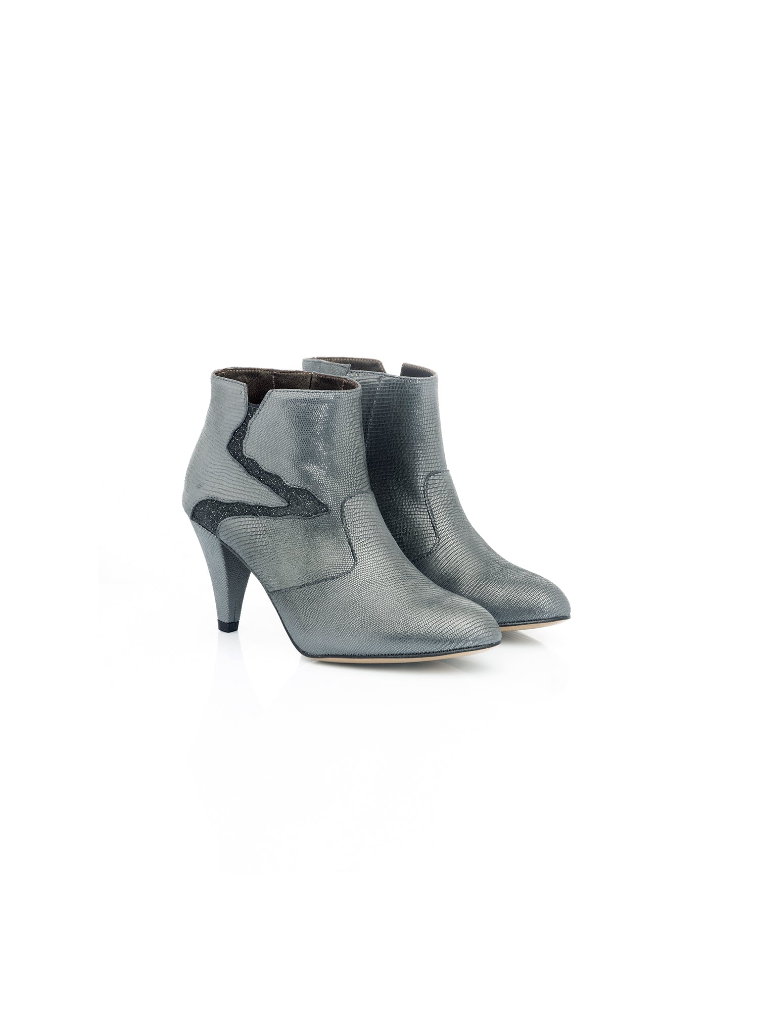 • Grey metallic printed nubuck, Multicolored glitter detail