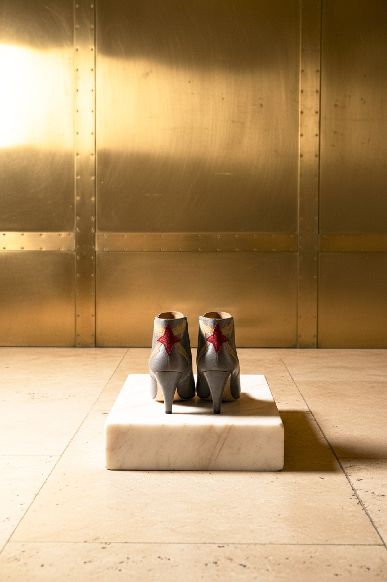Cette matière est un nubuck recouvert d'une fine pellicule métallisée qui le protège. Malgré cela il est important de les imperméabiliser avant la première utilisation, puis fréquemment si vous souhaitez les conserver en bon état. Évitez les expositions prolongées au soleil et à l’eau. N'attendez pas trop pour faire poser un patin sur vos semelles par un cordonnier chevronné. Faites attention à n'imperméabiliser que le nubuck car le glitter ne nécessite aucun entretien particulier si ce n'est de l'attention et un amour constant. Zones à éviter lorsqu'on porte des Patricia: Amazonie, Sahara, Toundra, Cercle Polaire, concert punk, salle de shoot, bowling, Marathon de New-York, métro les jours de grève, les meetings de partis extrémistes