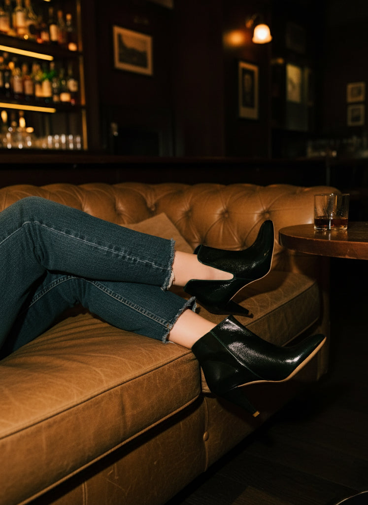 Je me suis mise à hurler "EUREKA" comme une Archimède de chez Whish. Je voulais une bottine pour marcher fièrement dans les rues, comme si la vie elle-même était un talk-show présenté par Oprah et que j’en étais l’invitée vedette tous les jours. Il me fallait une chaussure qui dise : « Oui, j’ai payé mon loyer, j’ai survécu à huit réunions Zoom et j’ai peut-être mangé un paquet entier de Chocapic à 23h, mais REGARDE MES PIEDS. » C’est alors que s’est imposé le nom : FIFTY FIVE. Comme une prière. Une bénédiction.