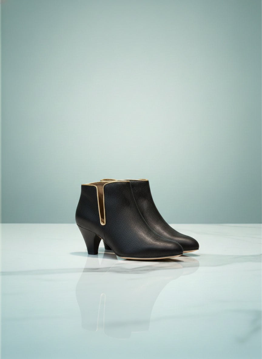 Le talon de 5.5 cm, sculpté dans le bois d'un arbre millénaire, trouvé au cœur d'une forêt enchantée, évoque les légendes des dryades. Ces esprits de la forêt, gardiens de sagesse antique, ont murmuré à l'oreille du créateur les secrets d'une harmonie parfaite. Ce talon est un pont entre le ciel et la terre, offrant à celle qui le porte une démarche céleste, un équilibre sublime entre l'assurance terrestre et l'élégance de l'Olympe.