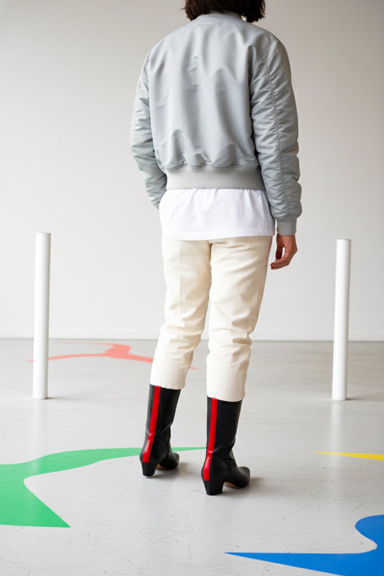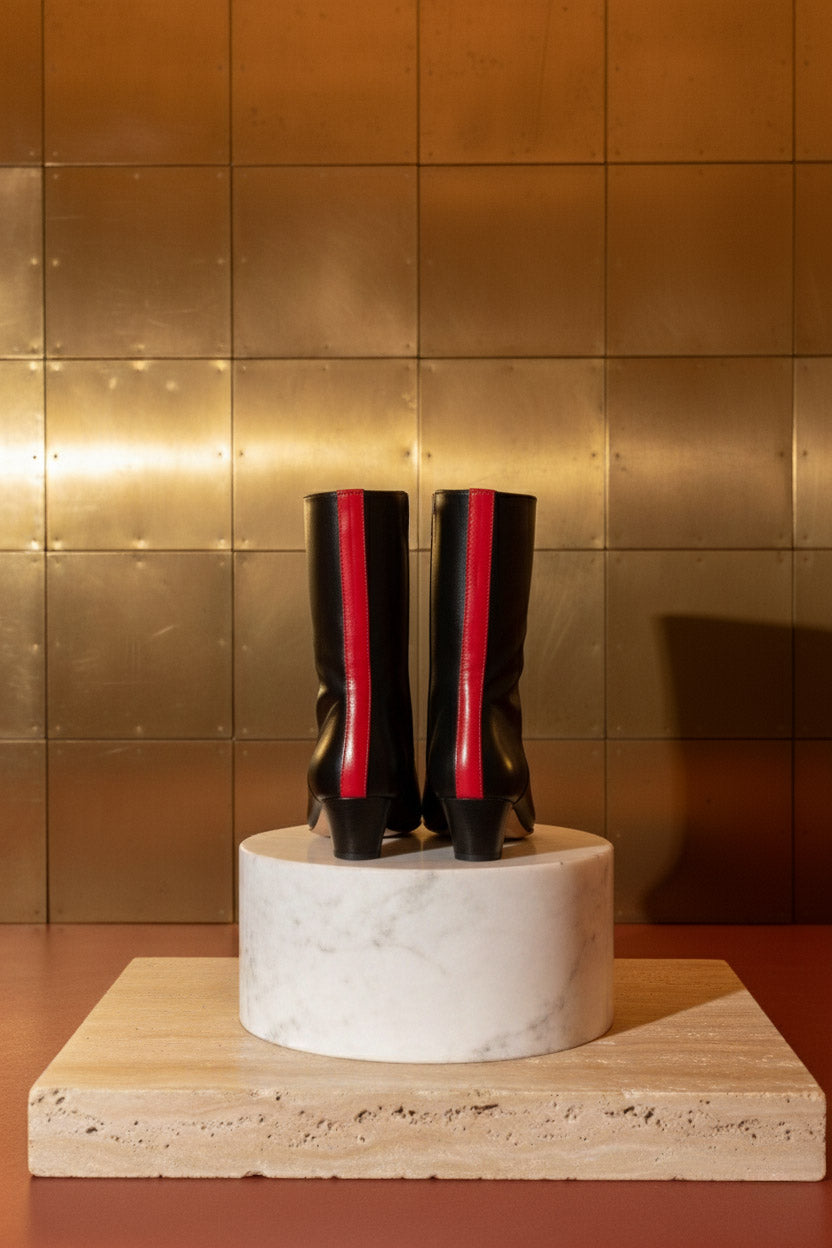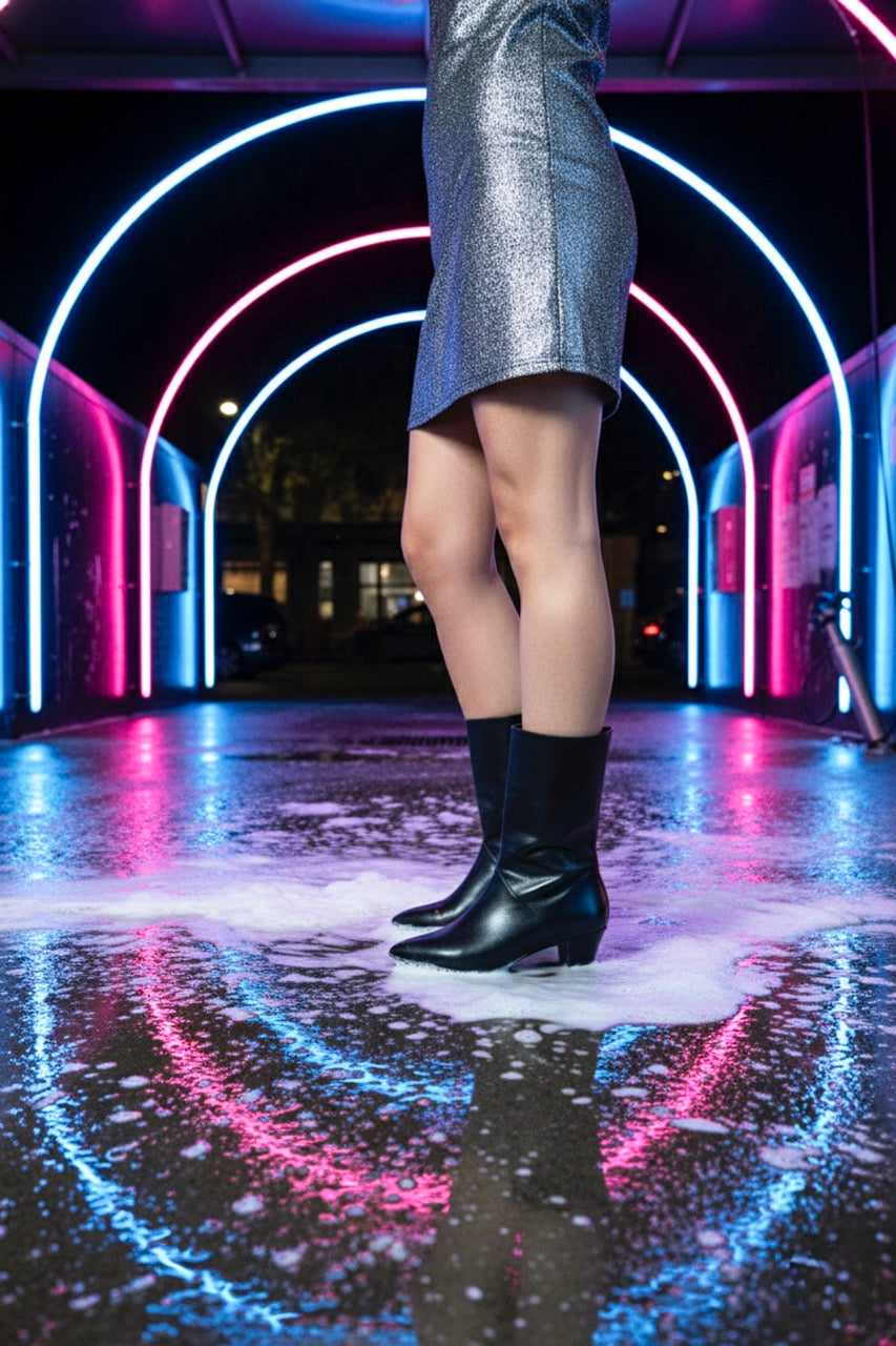 Kinkette, c’est la petite sœur qui a grandi en écoutant du PJ Harvey, qui a volé les bottes de sa mère et ne les a jamais rendues. Talon 4,5 cm, juste ce qu’il faut pour prendre de la hauteur sans renoncer à courir après un taxi, un flirt, ou son destin. Une mi-botte pensée pour les filles qui savent exactement ce qu’elles veulent, et qui le crient, le dansent ou le murmurent selon l’humeur. Avec Kinkette, pas besoin de faire genre. Tu fais déjà tellement tout. C’est le modèle rock, nerveux, presque insolent, mais toujours bien élevé. Enfin... juste ce qu’il faut pour ne pas finir en garde à vue. À porter avec un jean destroy, une jupe plissée ou rien du tout si t’es chez toi et que t’as décidé que c’est ton jour de gloire.