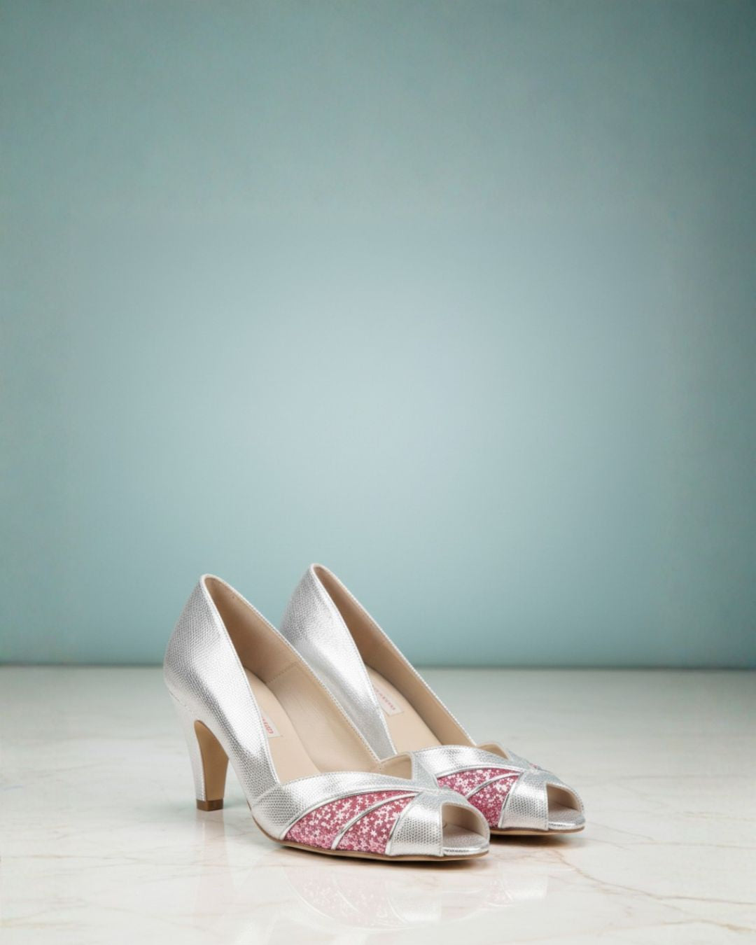 • Cuir imprimé métallisé argent avec détail glitter rose