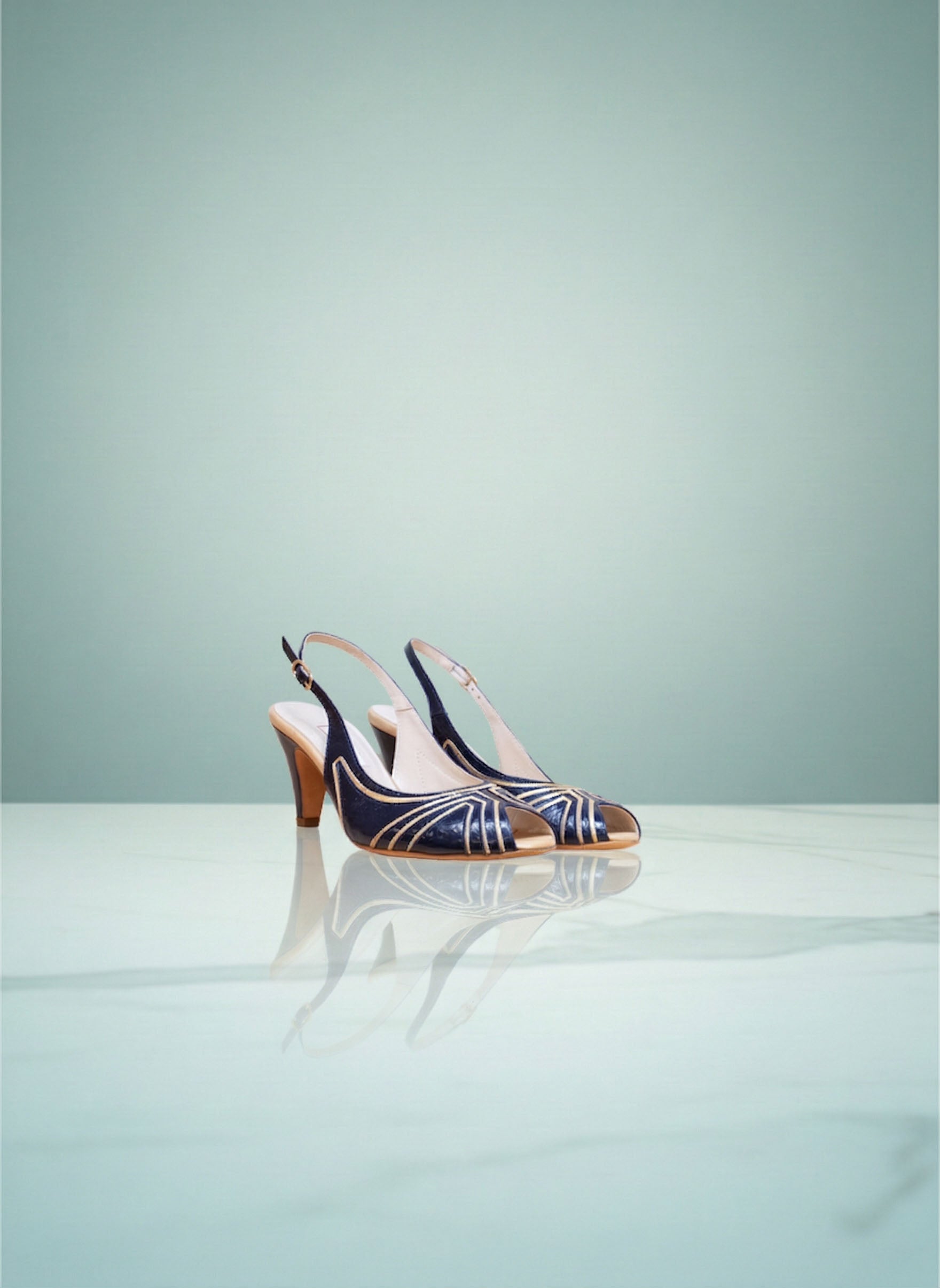 • Cuir verni froissé bleu marine avec détail nubuck métallisé doré